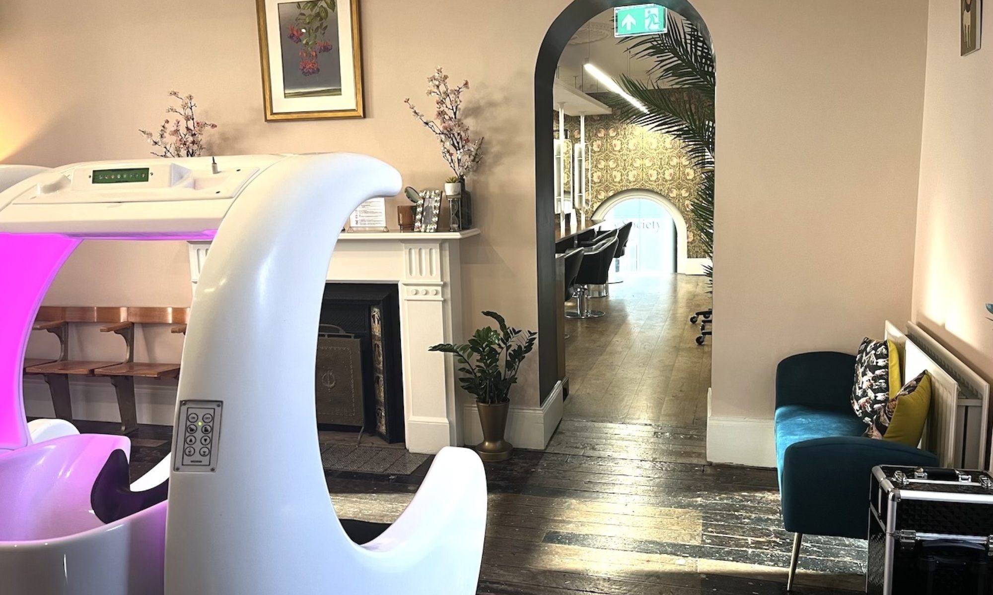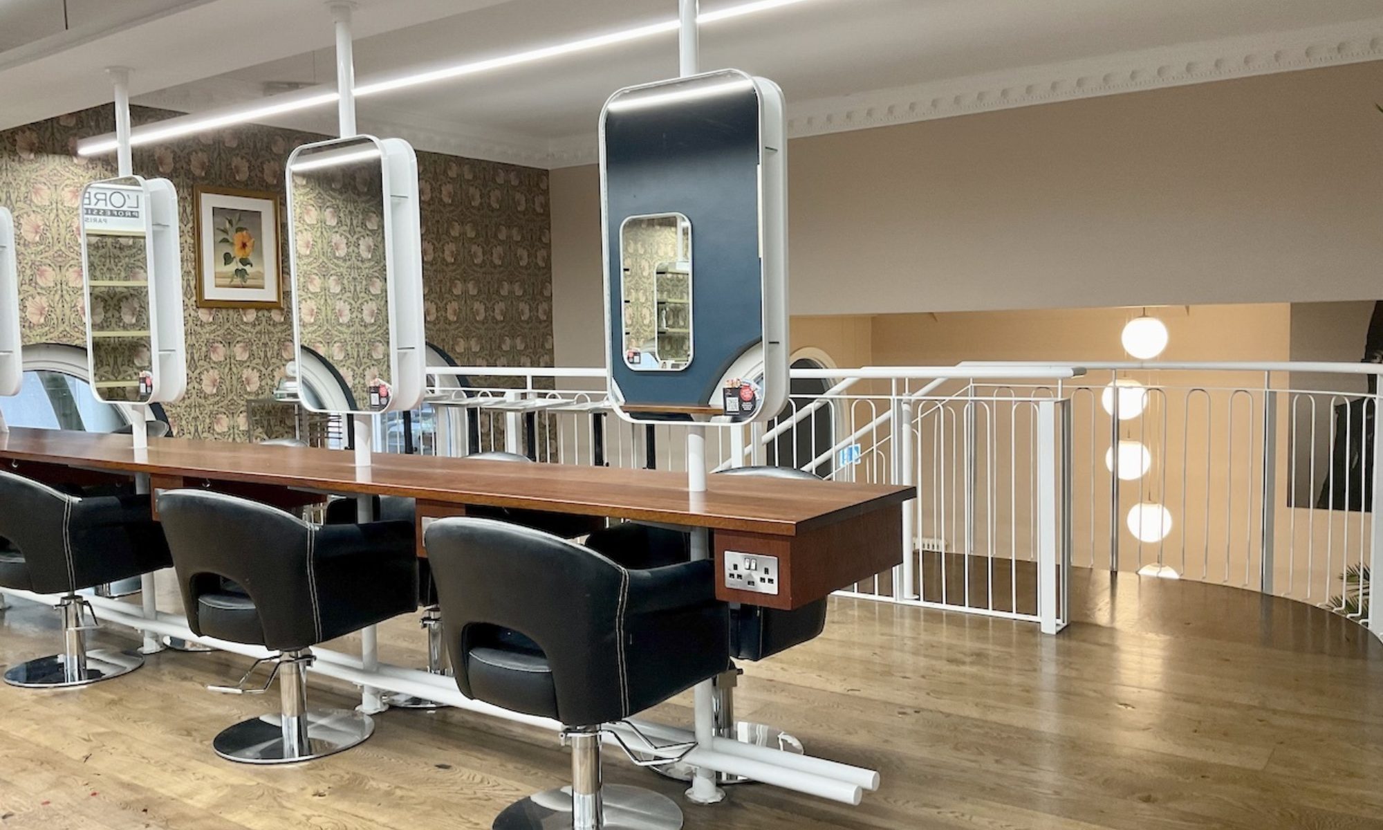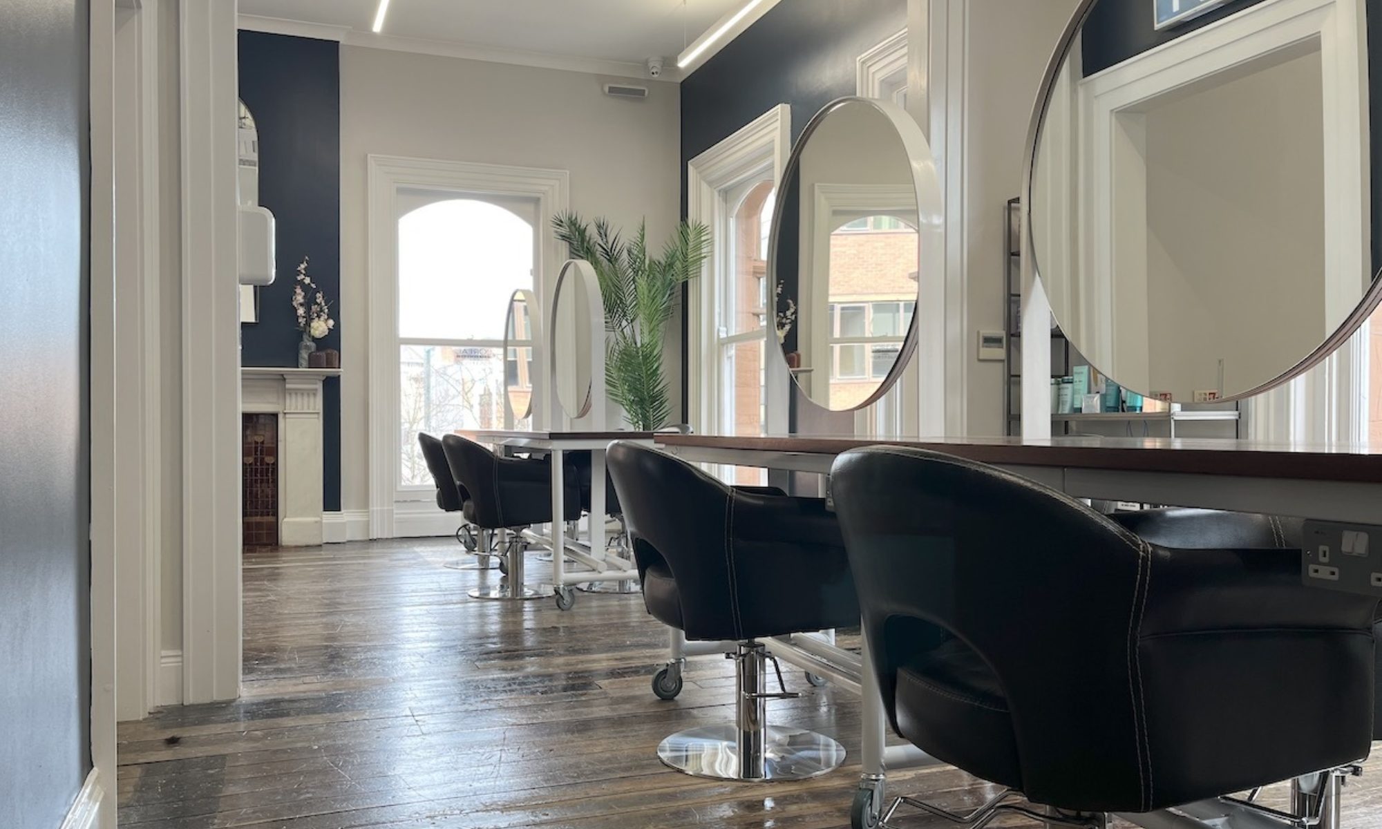 Beautifully restored and full of character the ground floor houses the now 'barber bank vaults' and lots of Victorian reception swagger. Each level is extremely spacious and comfortable with plenty of light and with its own private Hair Wash Room. The mezzanine floor is just for colouring hair so you are tucked away up and above for privacy. Finally there's the upper floor [once the bank managers luxury apartment], grand with its large white marble fire place it can be sectioned off for privacy or just enjoy the unique views over the city.