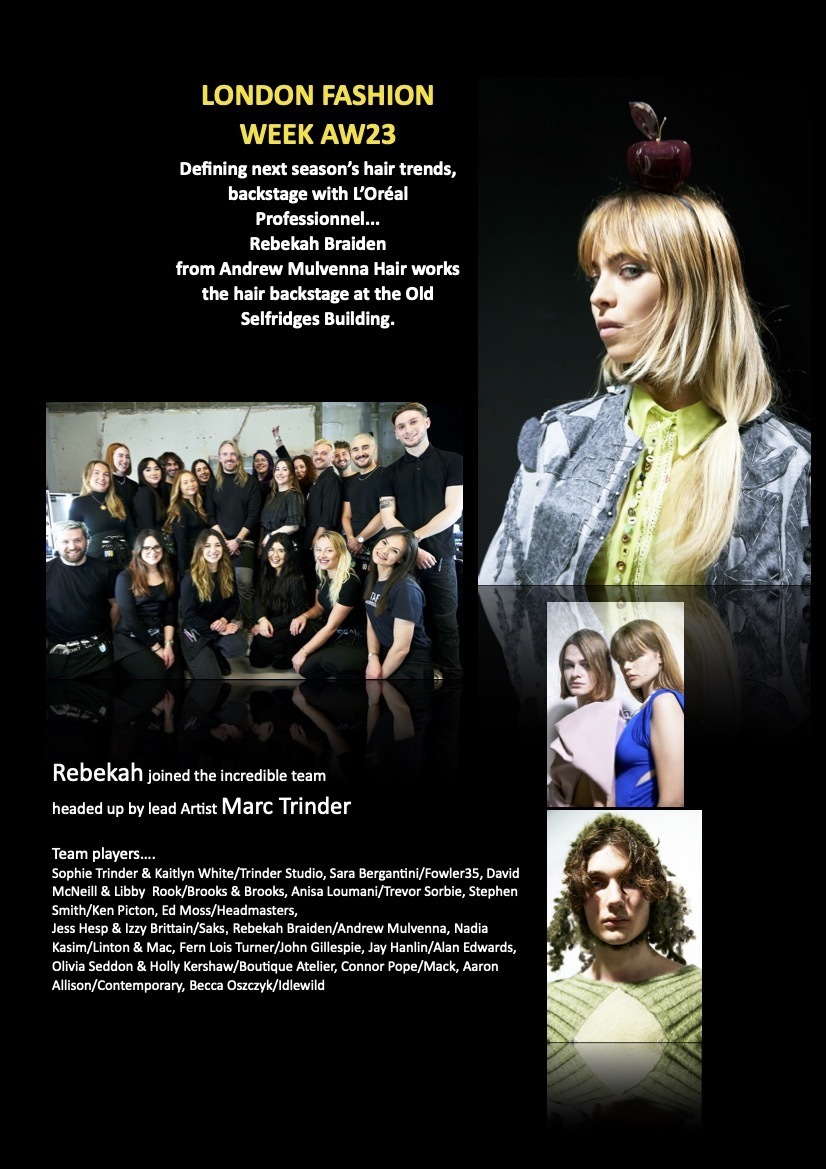 Stylist Rebekah has just came back from working at London Fashion Week. Joining a UK Team led by hair Artist Marc Trinder she styled hair for Twenty graduating CSM MA students presented their Collections on the BFC Mainstage: Georgia Presti, Maxime Black, Macinnes Limited, Max Anthony Brown, Hayley Zhenyu Shou, Jude Hinojosa, Alena Nevedrova, Oscar Ouyang, Nomvelo, Chen Si Fan, Louisa Fleischer, Yaku Stapleton, Chie Kaya, Woojun Jang, Pinanki, Nora Kassim, Francesca Lake, Allessandro Tondolo, Ellen Poppy Hill and Xuesong Yang.