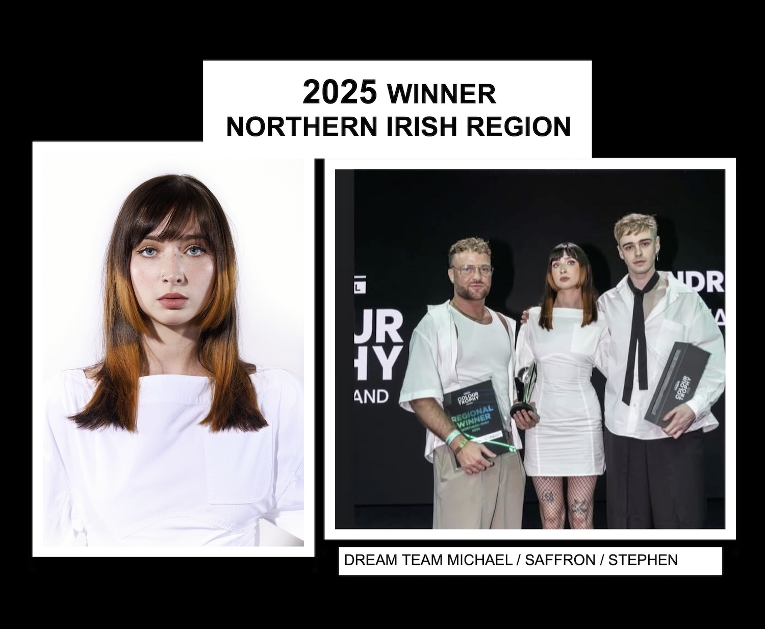 Dream Team Micheal, Stephen and model Saffron won the NI 2025 L'Oreal Colour Trophy in London over the summer. The 79th L'Oreal Colour Trophy as always demanded the highest skill levels coupled with a sharp eye on fashion and future trends to be presented on a live model in a runway event. Creating this super wearable high fashion top to toe look was key to their success this year - cut and colour was striking, 'on point' and super glossy. Well done to our team, we are all so proud !